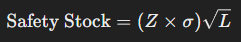 Square Root of Lead Time (L): Lead time is the time it takes from ordering new stock to when it arrives. The square root part just helps adjust the formula so it works properly mathematically. It makes sure you’re not keeping way too much or too little extra stock based on how long you have to wait for new items.